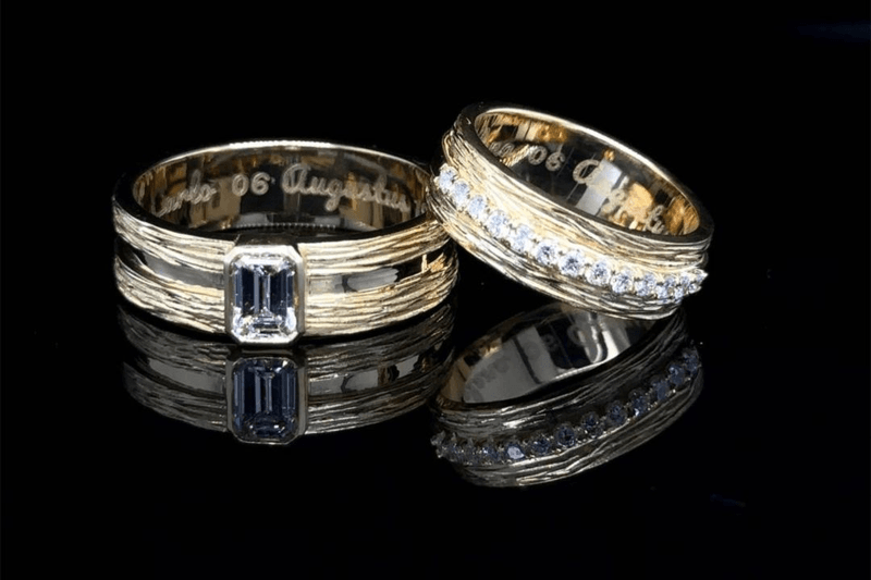 There are two types: diamond engravings and laser engravings. Diamond engravings go deeper into the surface and can be set either by hand or by machine. Laser engravings are less deep. But then again, they are very precise and the possibilities are endless: you can even have a photo engraved this way.