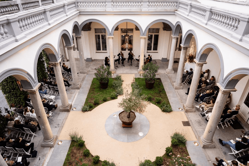 "The Castle of Drogenbos was designed in the 19th century by architect Jean-Pierre Cluysenaar, known for the Royal Saint Hubert Galleries in Brussels. He was inspired by Italy, and you can feel that in the richly decorated salons and in the “loggia” or colonnade, with its light arcades overlooking the gardens. It exudes the elegance of the “dolce vita”,‘ says Alexia.