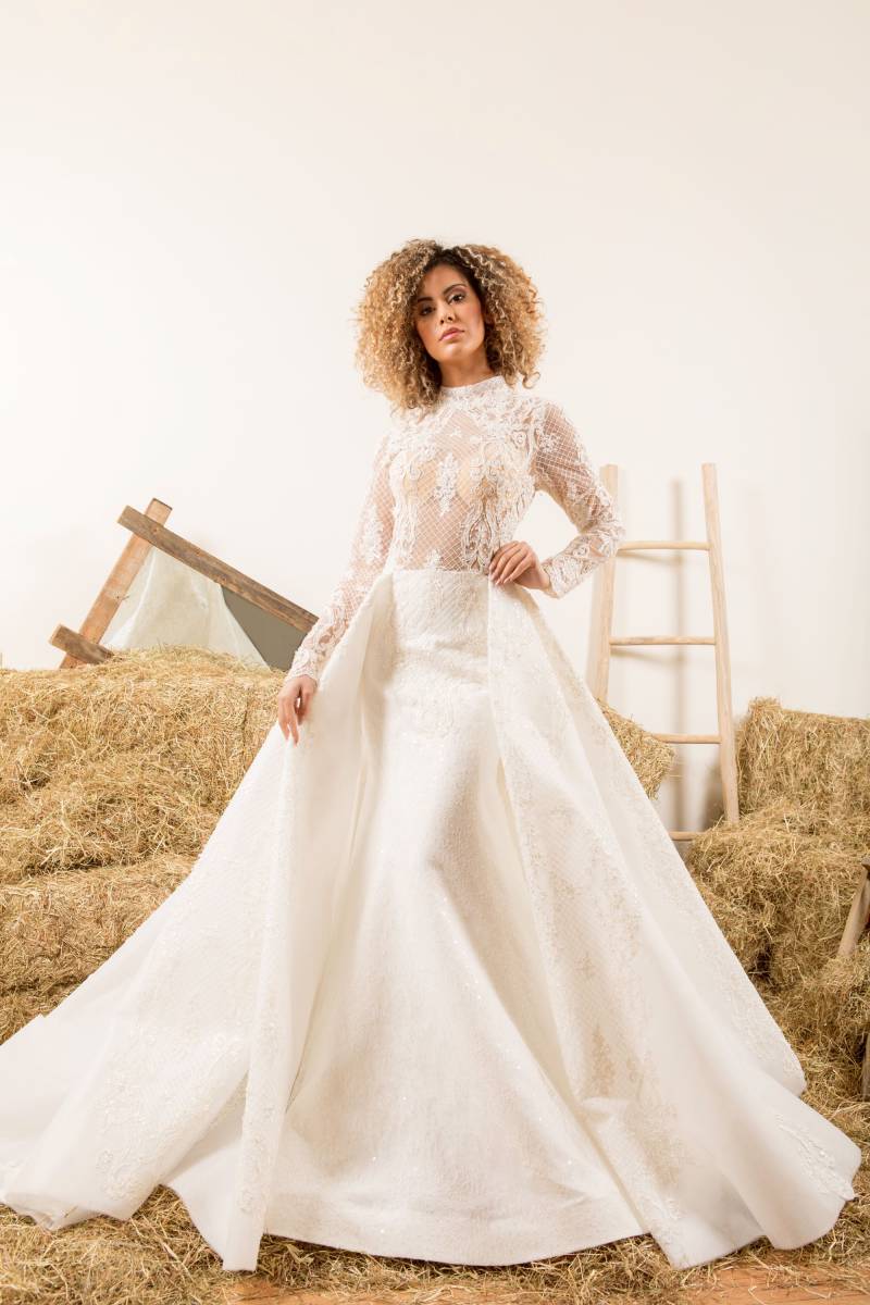At Atelier ExC, you'll find a comprehensive service for all brides, where they both design and customize wedding dresses. Whether you dream of a mermaid wedding dress, a bohemian style, an A-line design, a wedding dress with a low back neckline, a princess look, a fairytale design, a romantic style, a crop top wedding dress, a short wedding dress, a wedding dress with sleeves, a dress that is short in the front and long in the back, or even a colored wedding dress... Atelier ExC has it all.