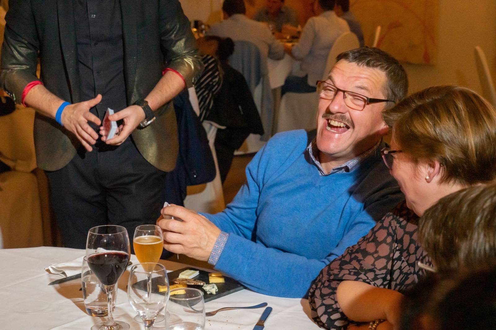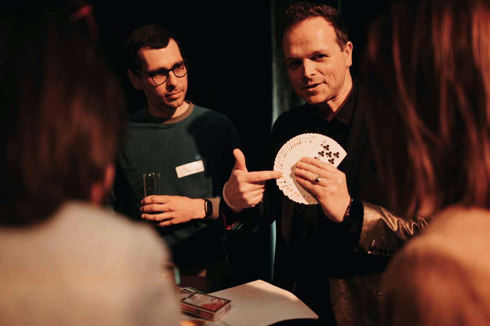 Magical acts during reception, dinner, or dance party: As a mystery guest, he delivers interactive and surprising magic moments that create connection, atmosphere, and lasting memories. No clichés or rabbit-in-hat tricks, but rather innovative illusions and clever mentalism.
