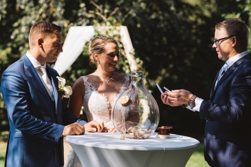 La cérémonie de mariage est souvent considérée comme l'un des rites de passage les plus importants. L'officiant de votre cérémonie peut incorporer un moment de rituel avec vous, afin de donner forme visuellement à votre union. Il ou elle vous guidera peut-être dans des moments plus sérieux, mais vous ramènera rapidement à cette occasion joyeuse : votre mariage !