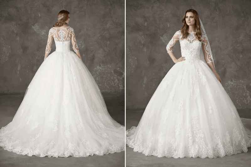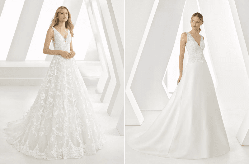 Photos (ci-dessus, de gauche à droite) : Boutique de mariée : Mari Fin Bridal – Marque : Eva Lendel / Boutique de mariée : JPC Collection – Marque : Sedka Novias / Boutique de mariée : Louise Mariage – Marque : Pronovia