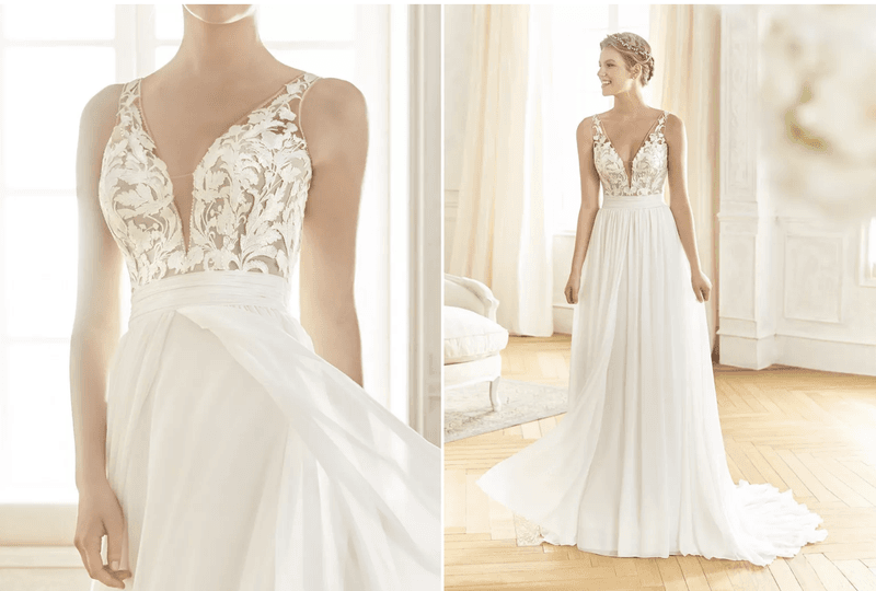 La ligne A se caractérise par un haut ajusté et une jupe évasée qui se rejoignent à la taille. Cette coupe est l'un des modèles les plus populaires parmi les mariées. En fait, il est possible d'aller dans différentes directions. Que vous souhaitiez un look classique, un style bohème ou une robe qui attire tous les regards avec beaucoup de dentelle, il y a un modèle A-line pour chaque mariée. Cette robe de mariée est parfaite pour les mariées à la taille fine et aux hanches larges.