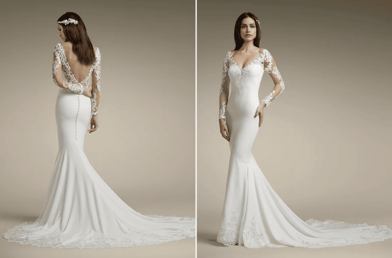 La dernière, mais non la moindre, est la robe sirène. Ce modèle est très similaire à la robe trompette, car la coupe sirène est également une robe près du corps. La principale différence est que cette robe ne s'élargit qu'à partir des genoux. Cela donne une robe de mariée avec une jupe crayon et une traîne évasée. La coupe sirène met également vos courbes en valeur et convient donc aux silhouettes en sablier.