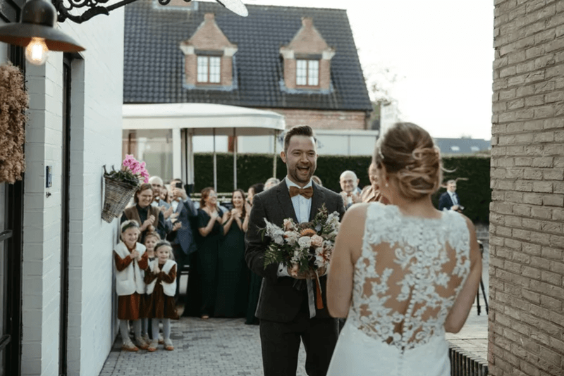Vous préférez que ce moment spécial reste privé et discret ? Dans ce cas, l'idéal est d'organiser votre first look à la maison. Dans le comfort de votre propre petite maison, vous pouvez laisser libre cours à vos émotions l'un envers l'autre. Vous voulez parier que toute la nervosité que vous avez ressentie auparavant disparaîtra immédiatement ? Si vous le souhaitez, invitez également vos parents et vos témoins et laissez votre jour de fête commencer immédiatement.
