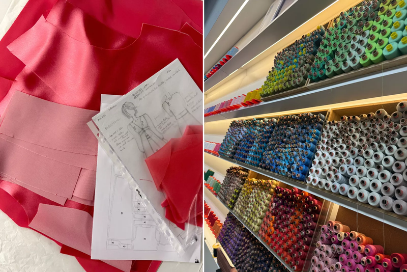 Une fois le design finalisé, le travail technique commence. « Nous commandons les tissus choisis et commençons à dessiner le patron en fonction de vos mesures », explique Emma.