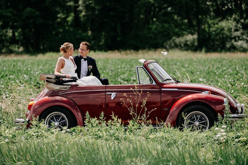 De iconische Volkswagen Kever blijft een tijdloze keuze. Met zijn elegante rondingen en vrolijke uitstraling past hij zowel bij een romantisch als bij een speels huwelijksthema. Je kan hem volledig personaliseren met bloemen en slingers, of zelfs met een krijtbord met jullie namen. Een originele ceremoniewagen die garant staat voor stijl en karakter.