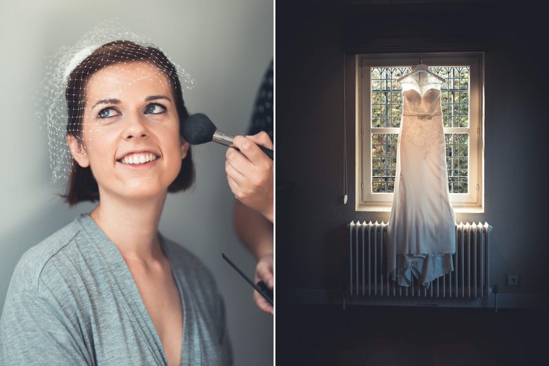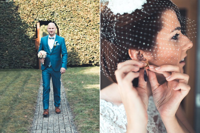Enkele weken later was ook de dag van Anne-Sophie en Alexander’s kerkelijk huwelijk éindelijk aangebroken. Anne-Sophie vertelt: “De nacht vóór ons kerkelijk huwelijk bleef ik bij mijn ouders slapen. Nadat ik me de volgende ochtend klaarmaakte, kwam Alexander hier met onze suiteleden aan. We genoten samen van een broodjesbuffet en er vond al een eerste fotoshoot plaats in de tuin en in de nabije omgeving.”