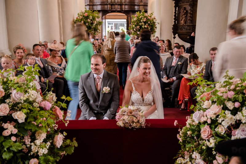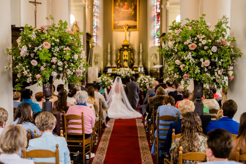 De kerkelijke plechtigheid vond plaats in de Sint-Pieterskerk in Emelgem, waar Laura als klein meisje werd gedoopt en haar eerste en plechtige communie deed. Ze had zich geen mooiere plek kunnen wensen.