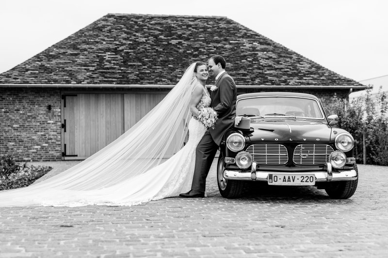 Laura en Karl kozen als trouwvervoer voor verschillende oldtimers, geregeld via kennissen. Laura: “Dit was één van de grootste stresspunten in onze voorbereiding. Gelukkig nam mijn mama deze taak over. Tip: laat je helpen, en kies voor mensen die weten wat ze doen!”