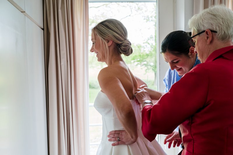 Op 27 april 2024 was na alle voorbereidingen de grote dag eindelijk aangebroken. De ochtend van Isabel en Johans trouw begon in alle rust. Femke van Femme Beauty verzorgde het kapsel en de make-up van Isabel en haar suiteleden. “Femke was perfect op tijd, werkte rustig door en zorgde dat iedereen zich goed voelde,” deelt Isabel.