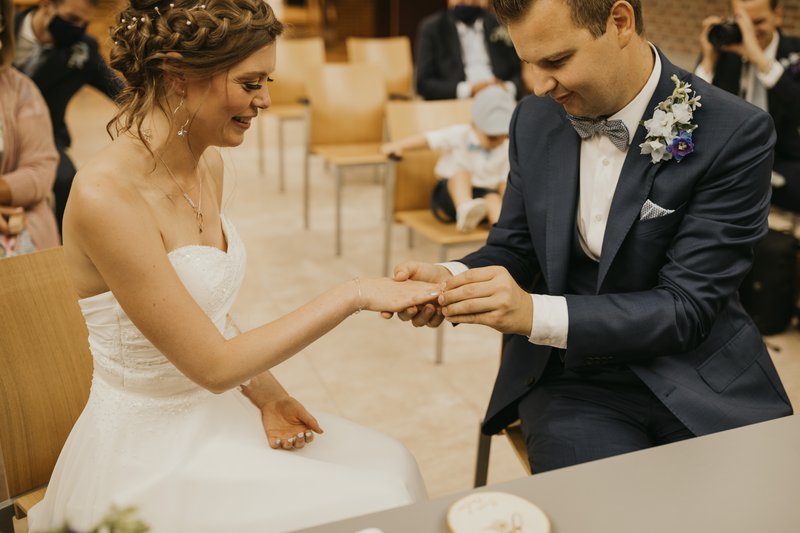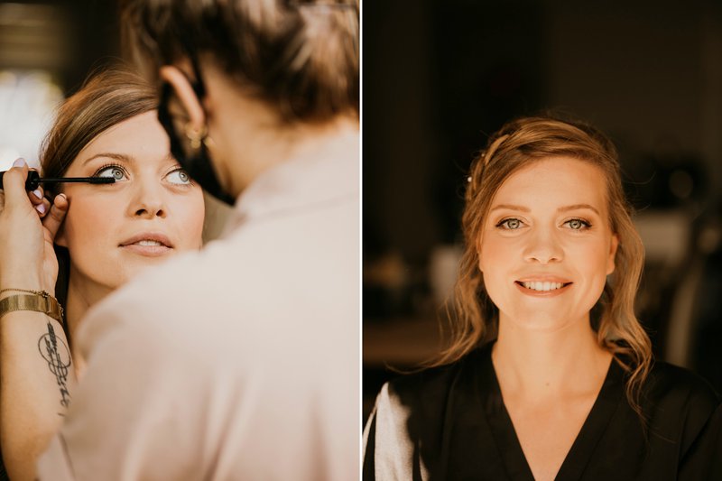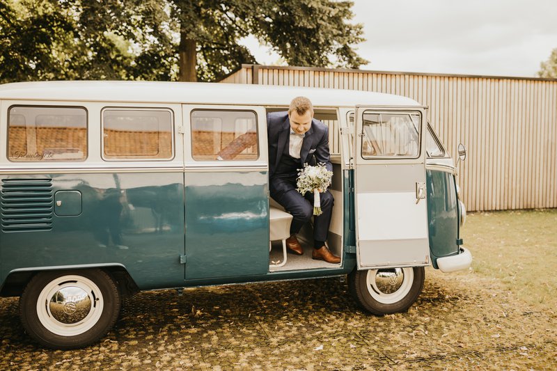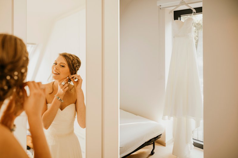 Paulien en Bram kozen ervoor om niet voor de kerk te trouwen. Dat heeft volgens hen niet echt een meerwaarde. Wat ze wel deden, was hun dag heel traditioneel starten. “Ik wou heel graag de avond voor onze trouw thuis slapen en dat heb ik dan ook gedaan. ‘s Ochtends stond Bram dan aan de deur van mijn vader waar we eerst gezellig hebben ontbeten. Mijn make-up & kapsel werden verzorgd door ODDs & Ends. Daarna zijn we in een Volkswagen busje naar het gemeentehuis gereden”, blikt Paulien gelukkig terug.
