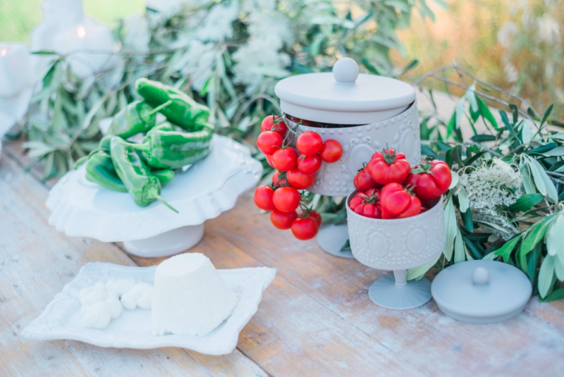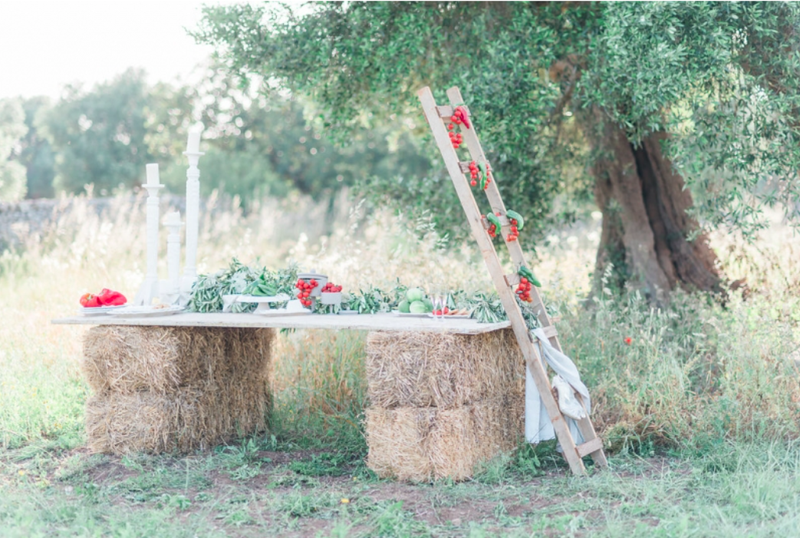 Helena koos ervoor trouw te blijven aan het pure, eenvoudige karakter van Puglia voor deze styled shoot. Ze gaat back to basic, recht naar de essentie van Puglia en haar kleurenpalet. Het groene van de olijfbomen, het bruine van de aarde, het rode van de bloemen, de groenten en het fruit, het witte van de huizen en de kliffen zijn dan ook op en top de kleuren van Italië zelf. "Door deze elementen te combineren wou ik een organische, chique sfeer creëren."