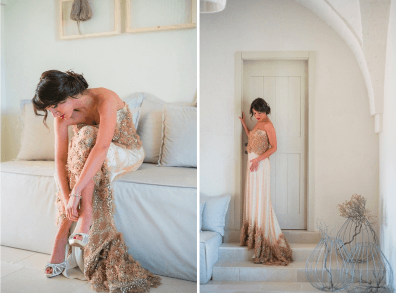 "Ondanks de opnames van een Amerikaanse soapserie, het huwelijk van een Amerikaanse megaster en het Red Bull Cliff Diving Wereldkampioenschap is deze regio nog steeds minder bekend. Vorig jaar groeide daarom het idee om er een styled shoot te organiseren. Ik wilde graag de natuurlijke schoonheid van Puglia in de kijker plaatsen, en aanstaande bruidsparen stimuleren om hun droom er in vervulling te zien gaan."