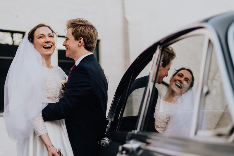 De huwelijksdag stond goed volgepland met heel wat leuke dingen. Het begon ’s ochtends met een first look in het ouderlijke huis van Delphine en daarna een lunch samen met hun suite van achttien vrienden en familieleden. Na de middag was er de kerkelijke viering, met aansluitend een bezoekje aan café ‘t Paradijs. “We vonden het super leuk dat we de mensen een glaasje hebben kunnen schenken na de kerkelijke dienst in het lokale café ’t Paradijs, recht tegenover de kerk. Zo konden we hen onmiddellijk bedanken voor de moeite om tot daar gekomen te zijn”, blikt Delphine tevreden terug.