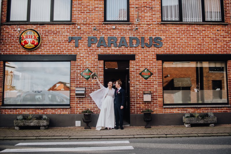Delphine en Jean-Baptiste leerden elkaar kennen tijdens hun studententijd op café in Leuven. Toen nog als onbekenden bij elkaar op café, maar nu enkele jaren later, staan ze als man en vrouw op café te klinken op wel heel goed nieuws! Want midden in de vierde coronagolf zei het koppel volmondig “Ja!” tegen elkaar en werd het een onvergetelijke dag! Lees hier hun romantische huwelijksverhaal.