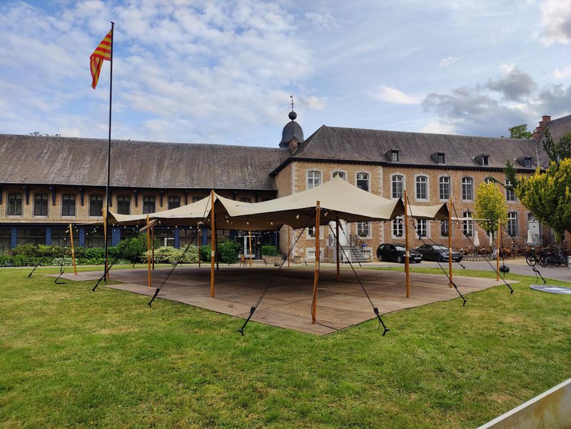 Probeer zoveel mogelijk rekening te houden met het Belgische weer (kachels, wind- en regenvoorzieningen of de mogelijkheid om de tent open te maken bij warm weer).