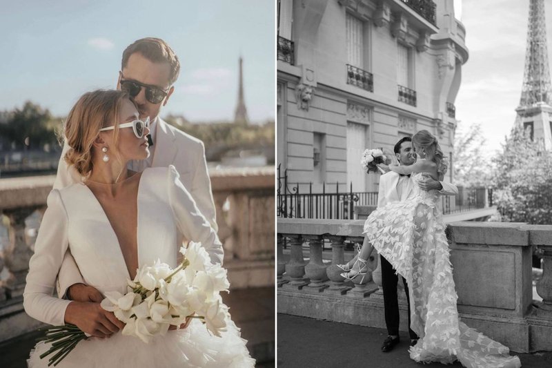 Foto (links): Trouwjurk: Karolien Verstraeten - Fotograaf: LUX Visual Storytellers / Foto (midden): Trouwjurk: Sikkema - Fotograaf: Elke Van Den Ende / Foto (rechts): Trouwjurk: Dianna David