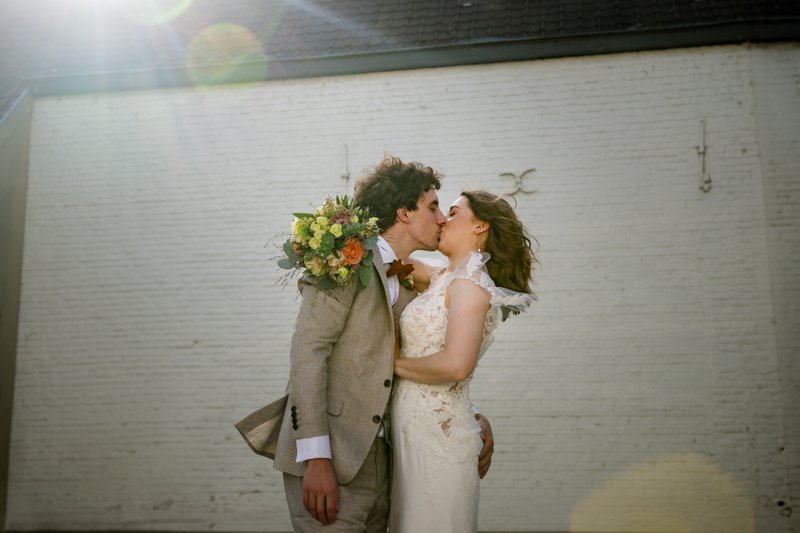 Ellen vond haar trouwkleed bij Bruidscouture Elena in Deinze. Bart liet zijn stijlvol trouwkostuum dan weer op maat maken bij Atelier Smalville in Oudenaarde.
