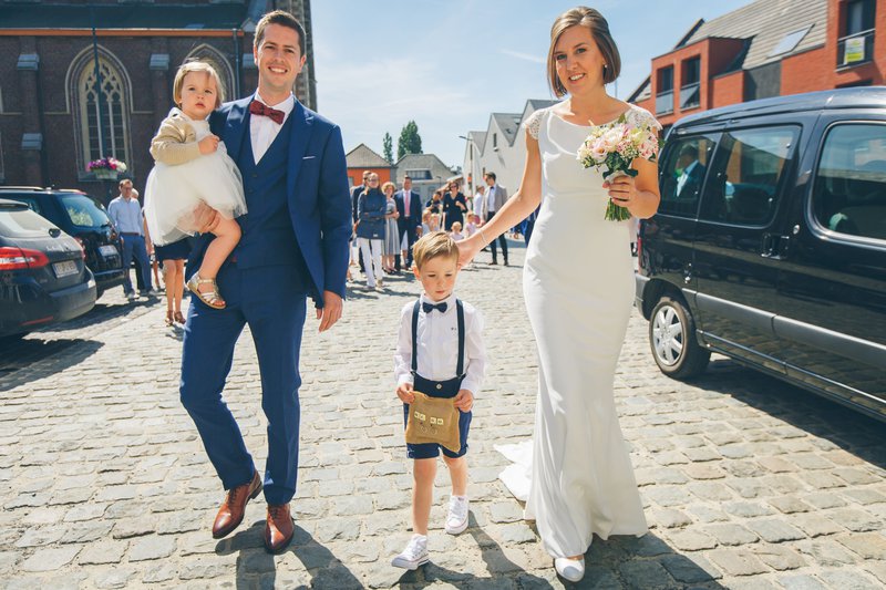 Op zaterdag 23 juni 2018 stapten Ellen & Bert in hun huwelijksbootje. Ze kozen voor een burgerlijk huwelijk. Voor hen hoefde geen kerkelijke plechtigheid of bijkomende alternatieve ceremonie - de ceremonie in het stadhuis volstond. Voor zowel Ellen als Bert was het belangrijkste dat hun kindjes Lars & Oona samen met hun dichtste familie en vrienden aanwezig waren. Dat er genoten kon worden van lekker eten en drinken. Volledig losgaan op de dansvloer mocht natuurlijk ook niet ontbreken. “We wilden vooral dat iedereen zich onmiddellijk op zijn of haar gemak voelde. Achteraf kregen we van verschillende gasten te horen dat zij héél veel liefde gevoeld hadden die dag, fan-tas-tisch toch!”