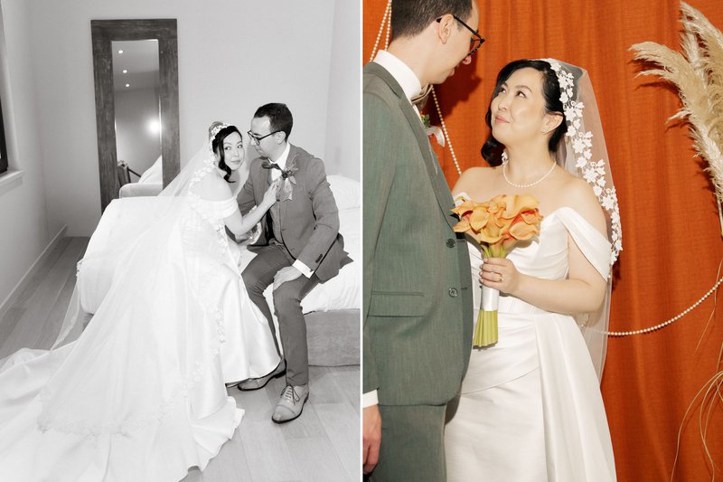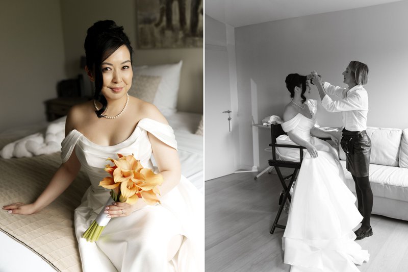 Faina nam zelf met veel zorg de planning, styling en organisatie van de drie vieringen op zich. Elk moment kreeg een eigen concept, met als laatste een écht herfsthuwelijk in oranje, gele en rode tinten. Hun leveranciers vond ze vooral via Instagram en House of Weddings, waaronder hair & make-up artist Anna Maltseva. Faina: “Mijn haar en make-up werden op 25 oktober mooi verzorgd door Anna Maltseva. Ik vond Anna via House of Weddings en was super blij met onze samenwerking. We hadden echt een fijne ervaring met al onze leveranciers.”