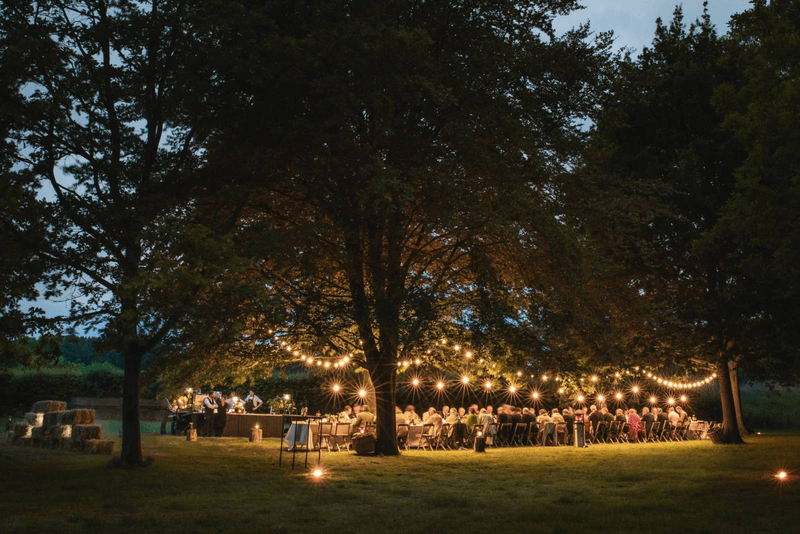 Voor een huwelijksfeest in de buitenlucht biedt Hofstede van Eversam een idyllische setting tussen de bloeiende kriekenbomen en de omliggende velden. De zuidgerichte tuin en boomgaard vormen het perfecte decor voor een ceremonie, receptie of diner onder de blote hemel. Bij mooi weer kunnen gasten genieten van lange tafels in de natuur, sfeervolle verlichting tussen de bomen en een intieme sfeer in het groen. De buitenruimtes zijn volledig moduleerbaar en bieden flexibiliteit voor elk moment van jullie feest.
