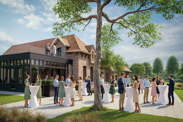 Domein Vossenberg biedt een veelzijdige ervaring waar binnen- en buitenruimtes naadloos samenkomen, met zeven feestzalen elk met eigen terras en uitzicht op de uitgestrekte vijver en tuin. De Waterfront-zaal valt op door zijn panoramisch uitzicht over het water en directe toegang tot een sfeervol terras, ideaal voor ceremonies en momenten in de frisse lucht. Of je nu kiest voor een intieme bijeenkomst in de knusse Pontonzaal of een groot feest in de lichte Foyer, de groene omgeving nodigt uit om feestelijk te genieten in alle rust en met volop ruimte voor creatieve invullingen.