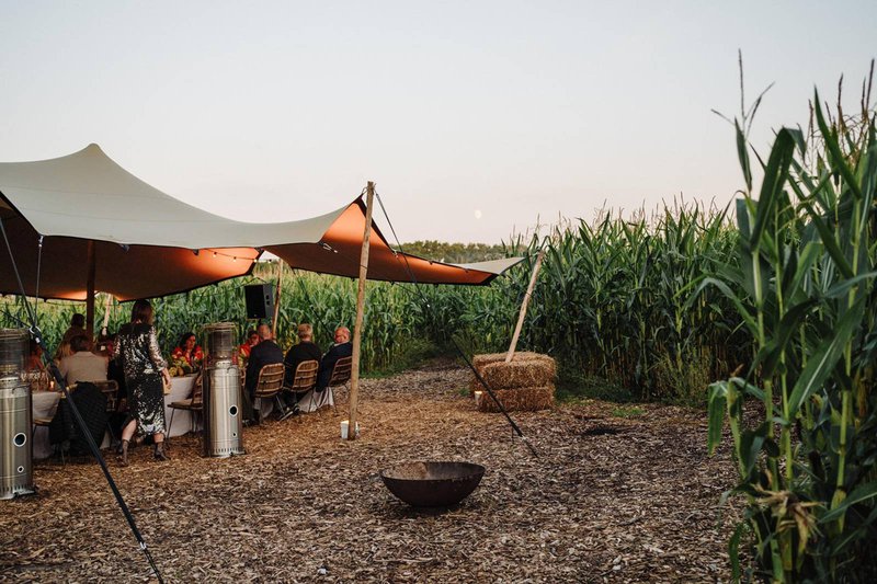In het hart van de polders bij Damme nodigt Maïsterplan jullie uit om te vieren in een omgeving waar rust en natuur de hoofdrol spelen. Tussen het groen vinden jullie de karaktervolle evenementencirkel voor een intieme ceremonie of feest, met de flexibiliteit van sfeervolle tenten die comfort bieden bij elk weertype. Hier vloeien authentieke BBQ-smaken, het zachte geluid van het maïsdoolhof en het knisperen van een kampvuur samen, terwijl je ‘s nachts onder de sterren in een glampingtent overnacht. Maïsterplan is een plek waar elke viering voelt als een oprecht en uniek avontuur, helemaal volgens jullie dromen.