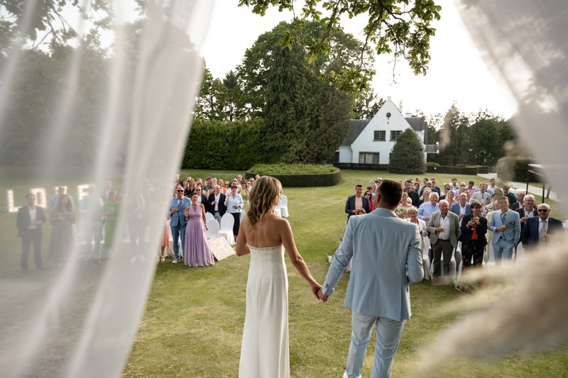 Bij Hof ter Zielbeek vormt de ruime tuin en het sfeervolle terras de perfecte locatie voor een ceremonie in open lucht. Omringd door het groen van het park en met voldoende ruimte voor al je gasten, creëren jullie hier een intieme en romantische setting om “ja” te zeggen. Of het nu gaat om een zonnige zomerdag of een zachte lenteavond, de buitenruimte biedt volop mogelijkheden voor een stijlvolle receptie, een bruisende aperitief of een ontspannen moment samen met je geliefden. Dankzij de flexibele indeling en het natuurlijke decor wordt jullie trouwdag hier een onvergetelijke buitenervaring.