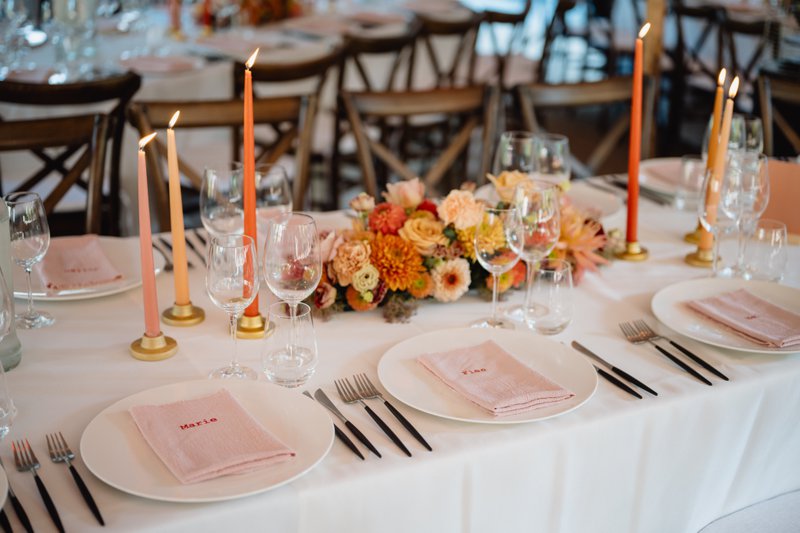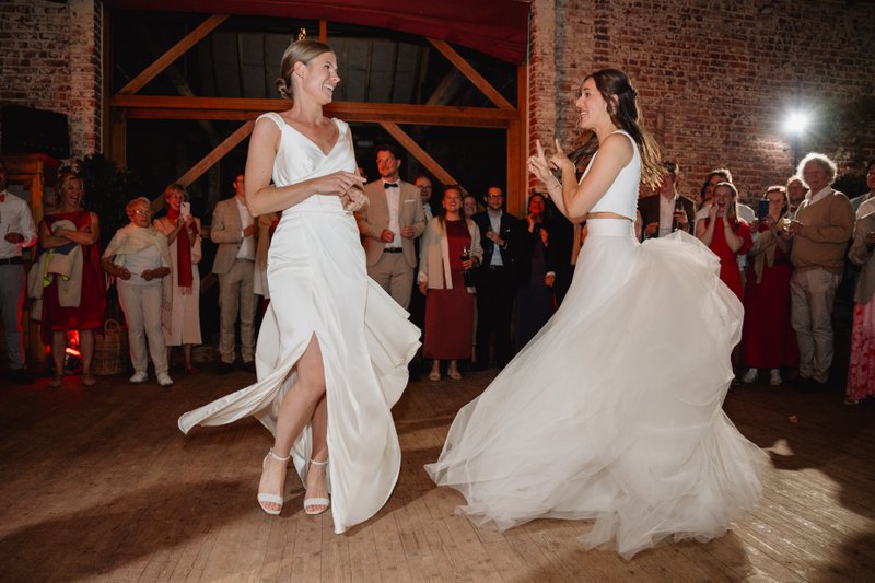 Cateraar Bart Biebauw verzorgde het diner, met zomerse smaken en verfijnde borden. Huwelijksfotografe Annelies Gailliaert van Annelies Photos legde intussen doorheen de hele dag elk detail vast: van de emotionele blikken tijdens de ceremonie tot de eerste dans en alles daartussenin. Haar spontane stijl maakte dat Fien en Marie zich volledig op hun gemak voelden.
