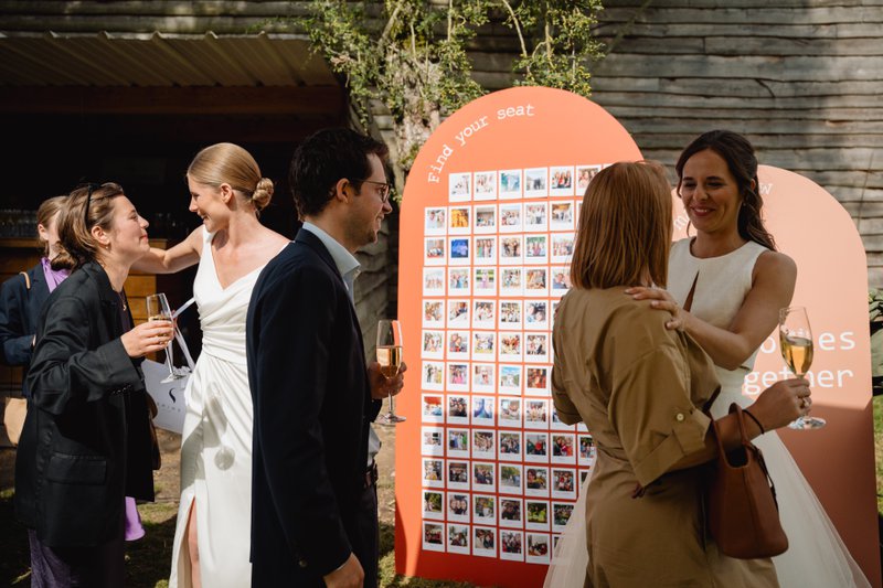 Fien en Marie huurden twee vakantiehuizen vlak bij hun feestlocatie Heerlyckheyt Roonenbergh in Westouter. Op vrijdag 12 juli 2024 kwamen hun naaste familie en beste vrienden hier reeds aan. Die vroege aankomst was een bewuste keuze, vertellen Marie en Fien: “We wilden ons weekend starten in verbondenheid, in plaats van in spanning af te wachten. Door op vrijdag samen te komen, kon iedereen al landen en ontstond er meteen een fijne sfeer. Het was een gezellige avond vol ongedwongen samenzijn, babbels en nog een paar laatste kleine voorbereidingen.”