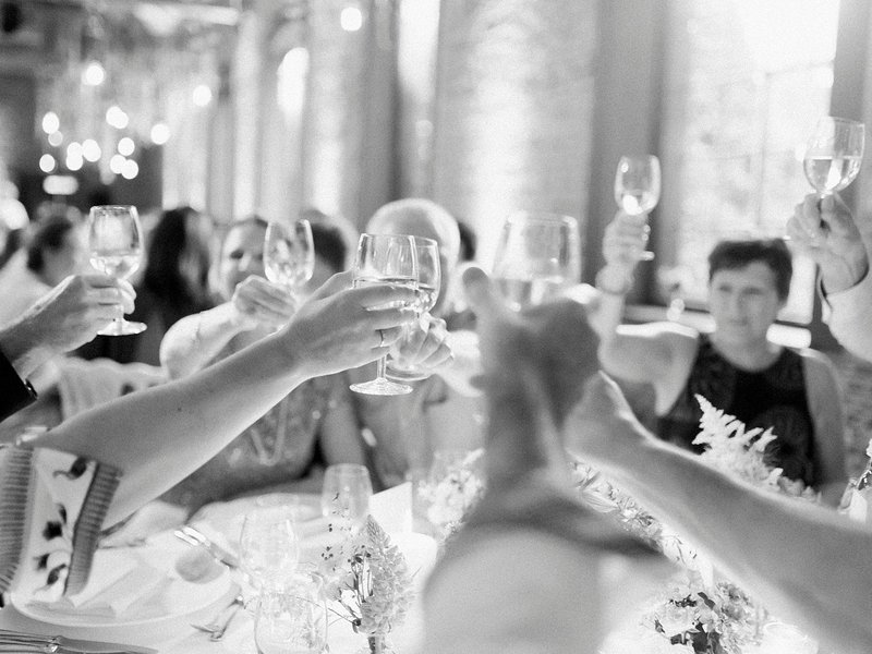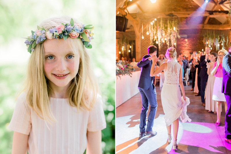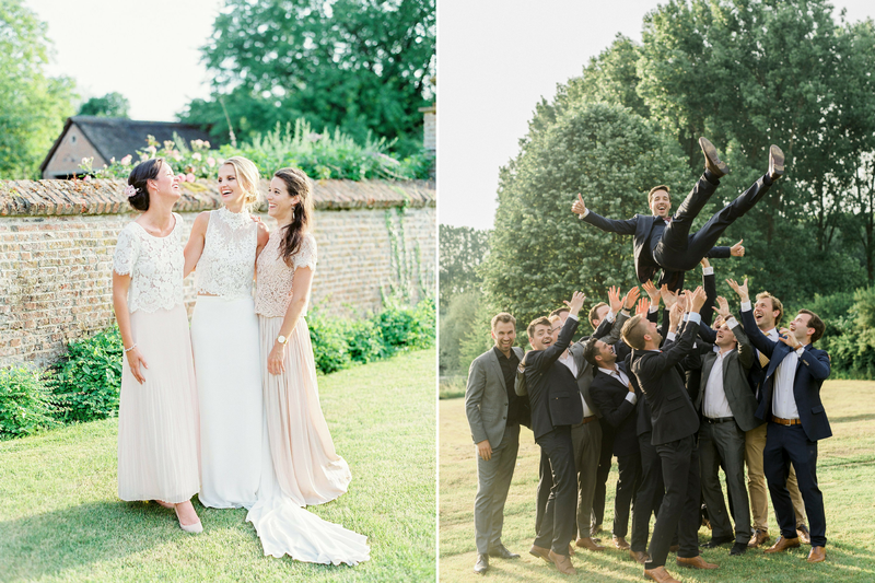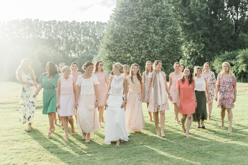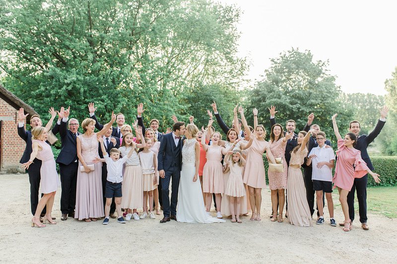 Dat de sfeer op het huwelijksfeest van Alexandra en Pieterjan goed zat, daar is geen twijfel over mogelijk. "We kregen van verschillende leveranciers te horen dat de warmte, vriendschap en liefde van ons gezelschap gedurende de hele dag duidelijk voelbaar was. Ze vonden dat de families zo goed aan elkaar hingen", zegt Alexandra. "We vonden het ook leuk om onze dierbaren zoveel mogelijk te betrekken bij de verschillende onderdelen van onze huwelijksdag: teksten laten voorlezen, persoonlijke toffe speeches, de kindjes van mijn zussen die kerkboekjes uitdeelden, de ringen brachten, de voorbeden lazen, bloemblaadjes strooiden, polaroid foto's namen van de gasten... "