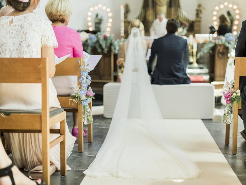 Een kerk vinden in de buurt van La Ferme de Balingue was niet zo eenvoudig. Normaal gezien dien je te huwen in een kerk waarmee je een band hebt. "Gelukkig maakte de priester van Bellingen toch een uitzondering, indien wij zelf een pastoor konden aanbrengen die de dienst wou leiden", zegt Alexandra. "De neef van mijn mama begeleidde uiteindelijk onze huwelijksmis, wat ons iets meer vrijheid gaf in het invullen van de plechtigheid."