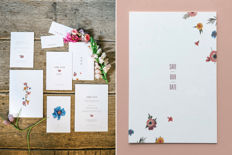 Alexandra en Pieterjan vonden het belangrijk dat de styling van hun huwelijksfeest een mooi geheel zou vormen. Van de save the dates tot de decoratie, en de hele look & feel van de dag. "Bloemen vormden de rode draad doorheen onze trouwdag: het drukwerk, de website, de decoratie, ... ze kwamen overal terug. Onze tafels kregen de naam van een bloem in plaats van een nummer", legt Alexandra uit. "We lieten ook één van onze verlovingsfoto's uit de shoot met fotografe Elisabeth Van Lent uitvergroten om deze als eye catcher boven de bar te hangen. Op de foto staan we samen in een lichtroze- paarsachtig bloemenveld, zo romantisch!"