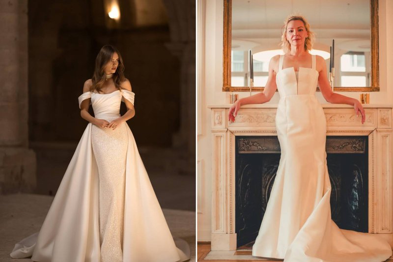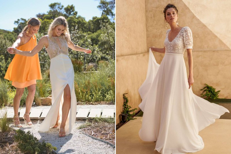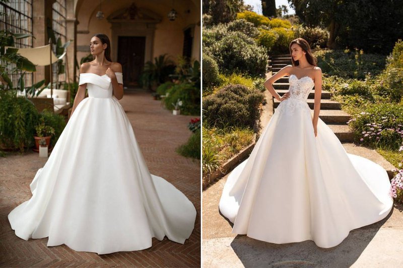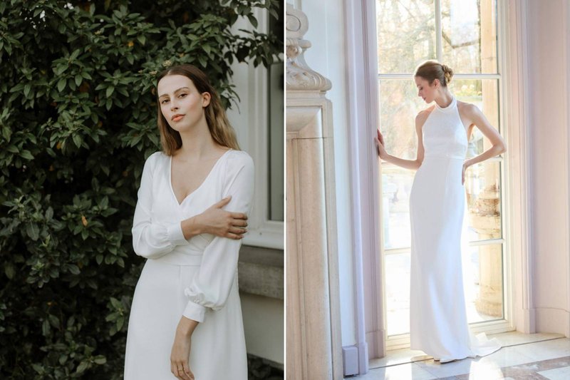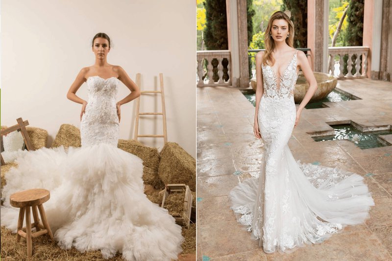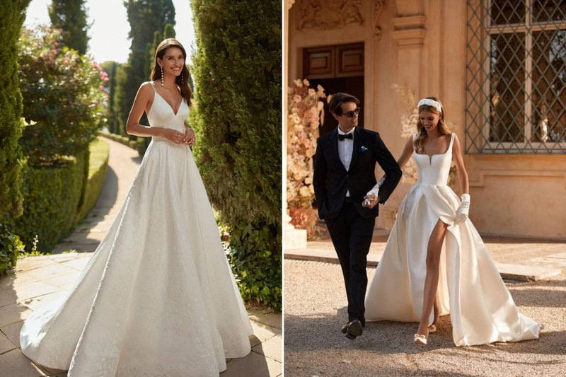 Foto’s (boven, v.l.n.r): Bruidswinkel: Mari Fin Bridal - Merl: Eva Lendel / Bruidswinkel: JPC Collection - Merl: Sedka Novias/ Bruidswinkel: Louise Mariage - Merk: Pronovias