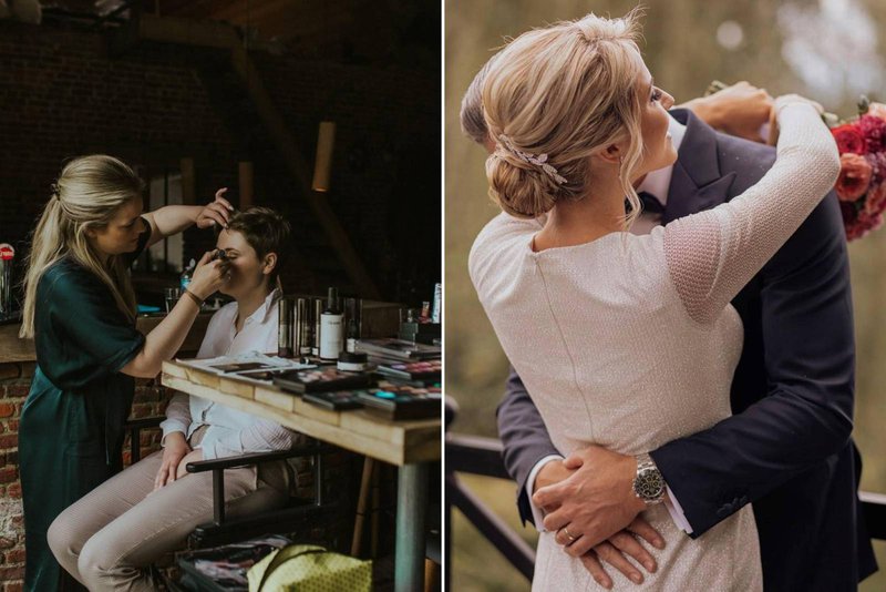 Foto’s (boven, v.l.n.r.): Make-Up: Gleam by Ellen - Fotograaf: LUX Visual Storytellers / Make-Up: Nyima Esthetiek - Fotograaf: Fotografie Tommie / Make-Up: Eline Cottenie - Fotograaf: EMigraphy