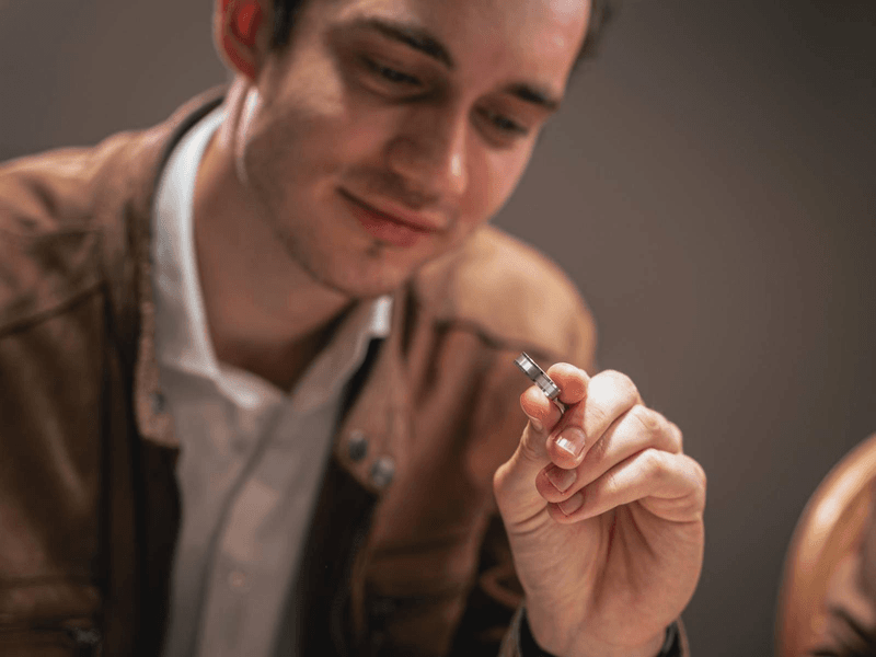 Een juwelier helpt je om de juiste maat te vinden zonder dat je partner iets doorheeft.