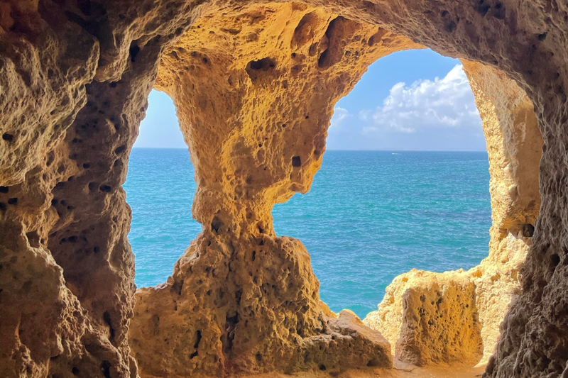 Een ander bekend strand is Praia de Marinha. Geniet hier van een groot zandstrand omgeven door prachtige rotsen. Spotten jullie het hartje?