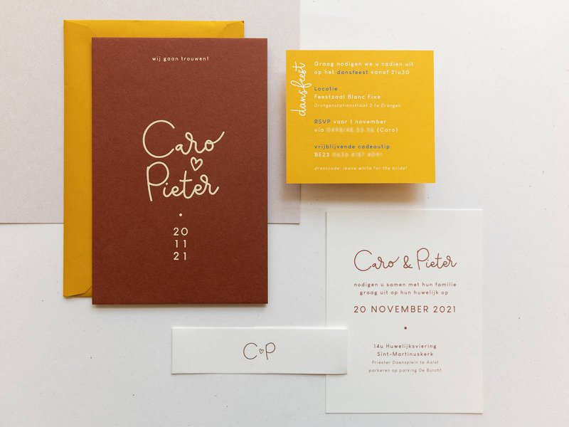 “Jullie aanwezigheid is ons grootste geschenk. Wie ons toch graag wil verrassen, mag ons steunen met een bijdrage voor onze huwelijksreis.”