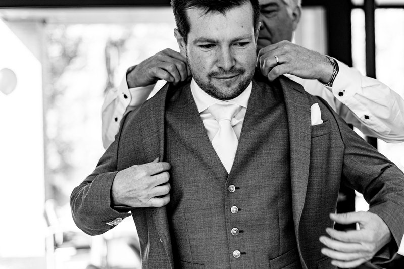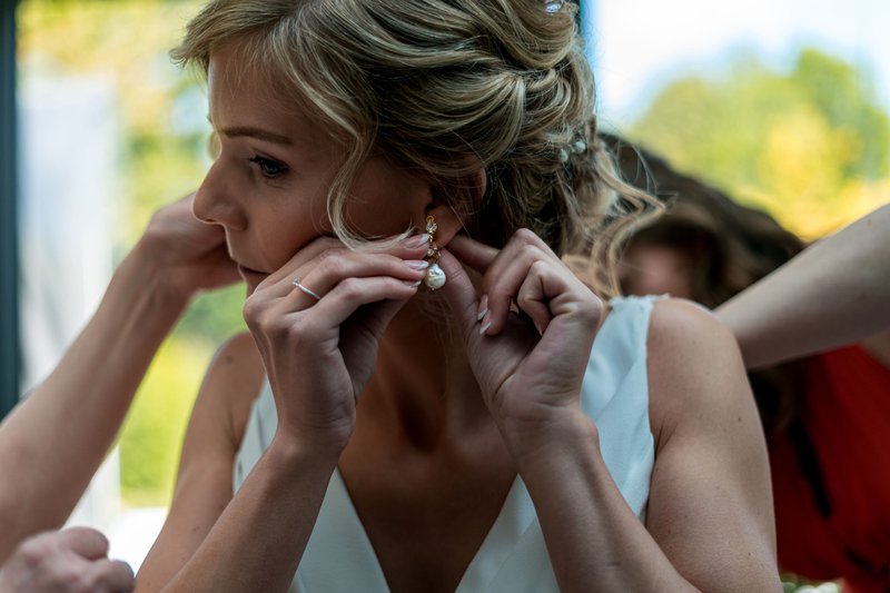 Ilse en Thomas’ huwelijksdag op 27 mei 2023 startte voor Ilse om 8 uur ‘s ochtends in haar ouderlijk huis. Hier maakte ze zich klaar samen met haar ouders, getuige, de hair & make-up artists en de foto- en videograaf. Om 10 uur maakte ook Thomas zich klaar, in hun eigen huis met zijn ouders, getuige en de foto- en videograaf. Wanneer iedereen klaar was om 11 uur, vonden twee ‘first looks’ plaats: eentje tussen Ilse en haar papa en de first look tussen Ilse en Thomas. Vervolgens werd er al een eerste glaasje op het huwelijk gedronken in de tuin van Ilse haar ouders.