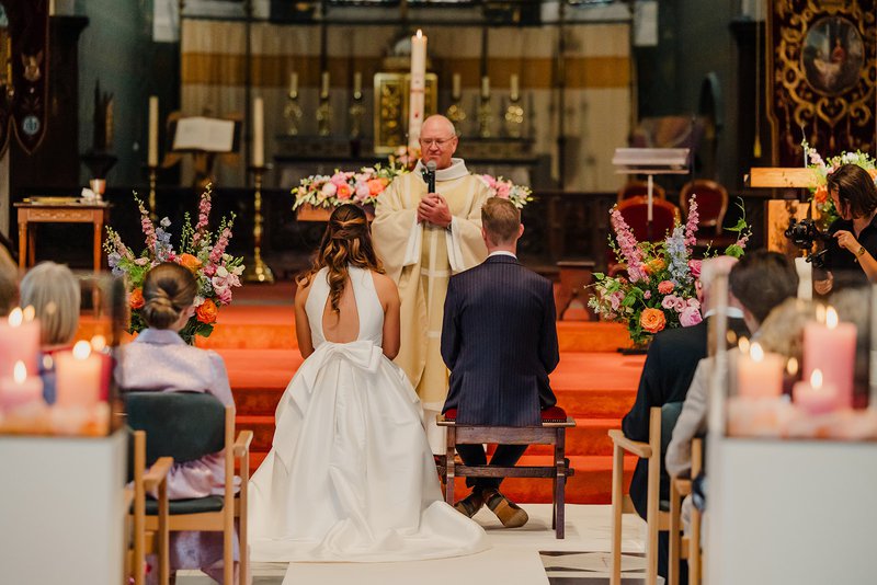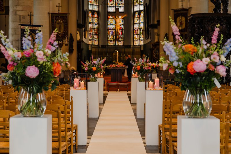 Na de fotoshoot vond Marie-Sophie en Jaspers kerkelijke plechtigheid plaats, in de Sint-Michielskerk van Roeselare. Marie-Sophie vertelt: “We kozen zelf alle liedjes voor onze ceremonie, die in de kerk prachtig gespeeld werden door een pianist. Dit vonden we veel persoonlijker en mooier dan muziek van een cd-speler te laten afspelen. Ceremoniemeester Dominiek van Ceremonie Devolder leidde de viering in goede banen. Dankzij hem verliep onze hele dag vlekkeloos!”