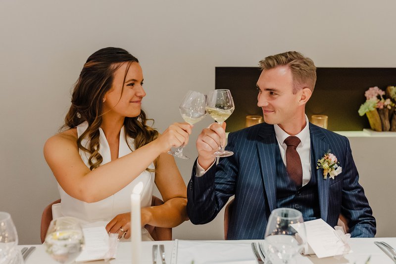Tot slot deelt het bruidspaar nog hun gouden raad voor verloofde koppels: “Geniet van élke minuut van de dag. Voor je het weet, is het voorbij. Laat kleine foutjes dan ook los. Er kan altijd wel eens iets misgaan, dat maakt jullie dag echter extra uniek en onvergetelijk. Alles komt uiteindelijk goed!”