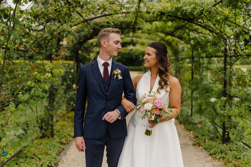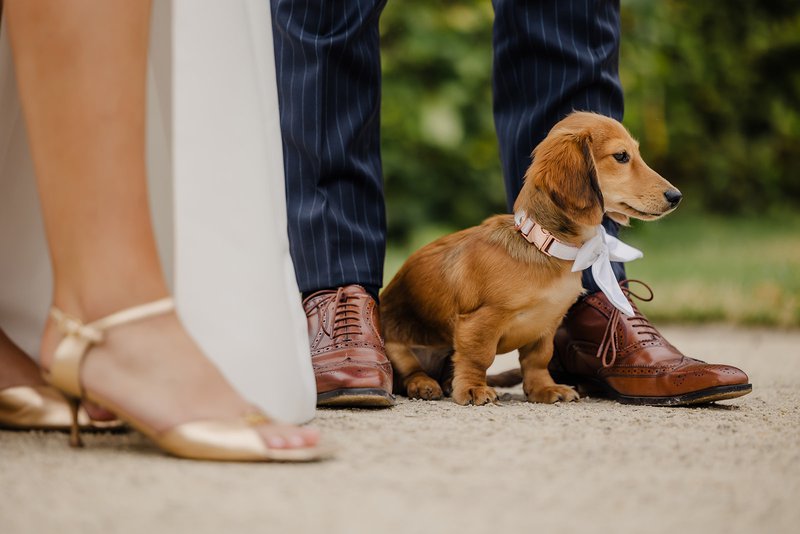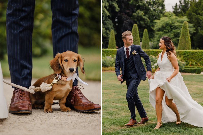 Na de kerkviering deed het bruidspaar nog een fotoshoot met hun twee met huwelijksfotografe Leyla Hesna, in de Rozentuin in Kortrijk. Marie-Sophie: “Ons hondje Phoebe kon ook even deel uitmaken van de fotoshoot; daar waren we heel blij mee!”