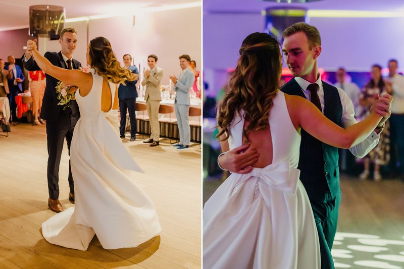 De sfeer zat er dus al goed in toen het na het diner tijd was voor de openingsdans - Marie-Sophie en Jaspers favoriete moment van hun trouwdag! “We hebben maandenlang danslessen gevolgd bij Jade en Rhune van Moving Memories. We wilden geen klassieke dans, maar iets dat écht bij ons paste. Toen het moment aangebroken was, verliep alles precies zoals we hadden geoefend. We hebben er volop van genoten, en achteraf kregen we zó veel mooie complimentjes van onze familie en vrienden,” lacht Marie-Sophie.