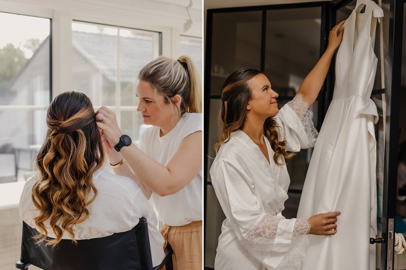 ​Het klaarmaken gebeurde op deze dag met de hulp van een ervaren beautyteam: Beauté Paulette verzorgde het kapsel van Marie-Sophie, haar suiteleden en bruidsmeisjes, terwijl de make-up van Marie-Sophie, haar mama en schoonmama werd gedaan door Celien Vanhoutte. La Vie d’Or deed dan weer de make-up van de vier bruidsmeisjes.