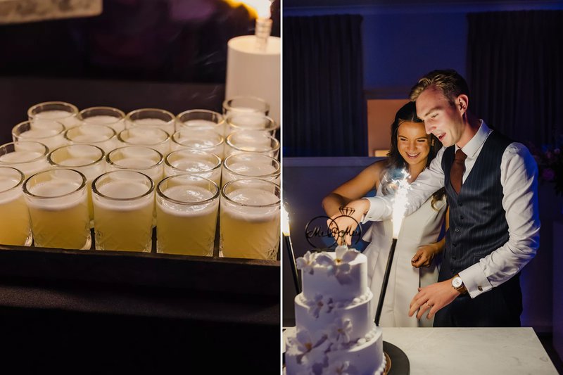 ​Marie-Sophie gaat verder: “Het eten was top! We kregen er zoveel mooie complimenten over van onze gasten, zelfs nog dagen na ons feest. Tussen het hoofdgerecht en het dessert werden er mojito-shotjes geserveerd; mojito’s hebben voor ons namelijk een speciale betekenis. Toen Jasper en ik elkaar nog leerden kennen, dronken we vaak mojito samen. Het voelde daarom extra persoonlijk en bracht meteen veel sfeer in de zaal.”