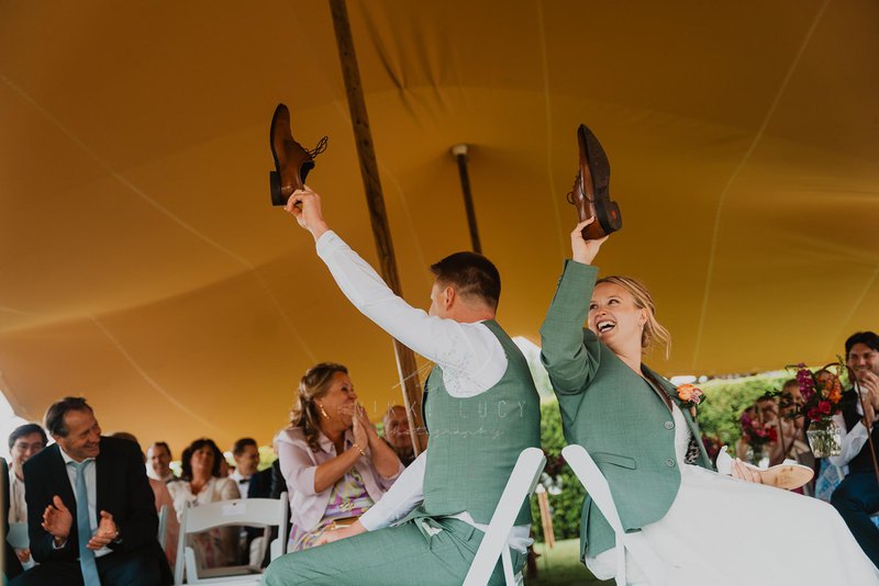 “Denk bijvoorbeeld aan een wensdoos waarin iedereen een lief woordje of een gouden tip voor een goed huwelijk mag steken. Het koppel zelf mag deze doos pas op hun eerste huwelijksverjaardag openen.”