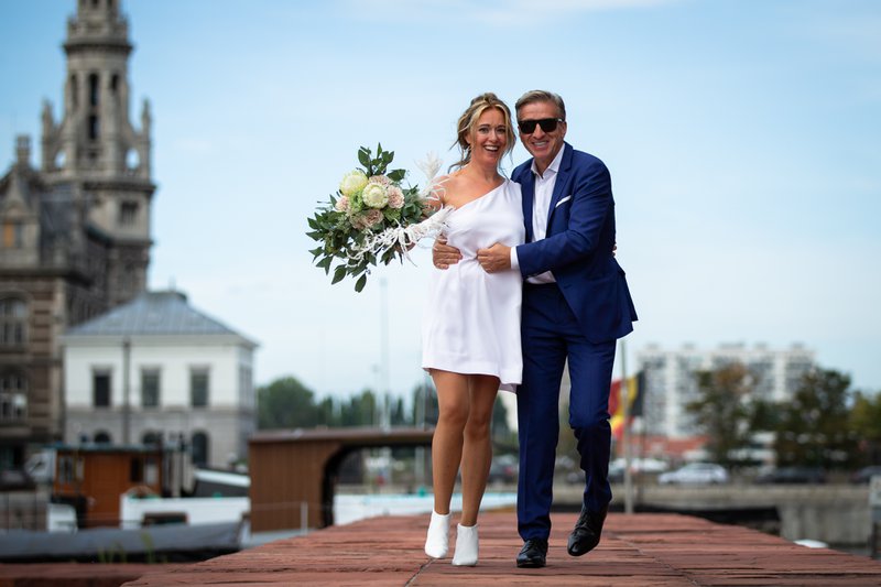 Katrien en Philip hadden al jaren een oogje op elkaar voor de vonk finaal oversloeg. Vier jaar na hun verloving, op de veertigste verjaardag van Katrien, gaven ze elkaar hun ja-woord - op 4 september 2020. Corona gooide echter roet in het eten: het feest voor 150 man werd een feest voor 20 dichte vrienden en familieleden. Het werd een ‘bubbel wedding’, onder de Belgische zon.