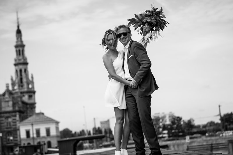 Fotograaf: GPix Photography / Trouwjurk: Tailor made, Laurie’s / Trouwkostuum: Hugo Boss / Bloemen: Bricks & Blooms / Grafisch ontwerp: Touch of Gold / Make-up & kapsel: youbyyente / Locatie: Bar du Port