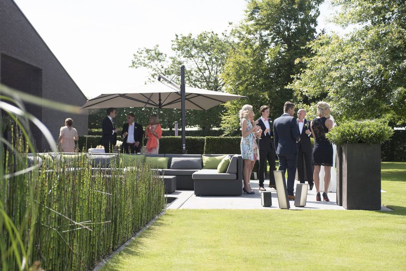 Maar ook op de dag van het grote feest, zorgden Benedicte en Sam voor een heel intieme sfeer, waarin samenzijn met de familie centraal stond. “Iedereen van de suite kwam ‘s morgens al naar mijn ouderlijk huis. Alle mannen verzamelden in de pool house bij het zwembad waar ze biljarden, broodjes aten en gezellig koffie dronken. Alle vrouwen maakten zich klaar in het ouderlijk huis. Dat vroeg natuurlijk wat meer tijd (lacht). En we liepen elkaar voortdurend tegen het lijf in de tuin. De sfeer was zo warm, en gezellig. Iets wat ik altijd zal koesteren”, vertelt Benedicte.